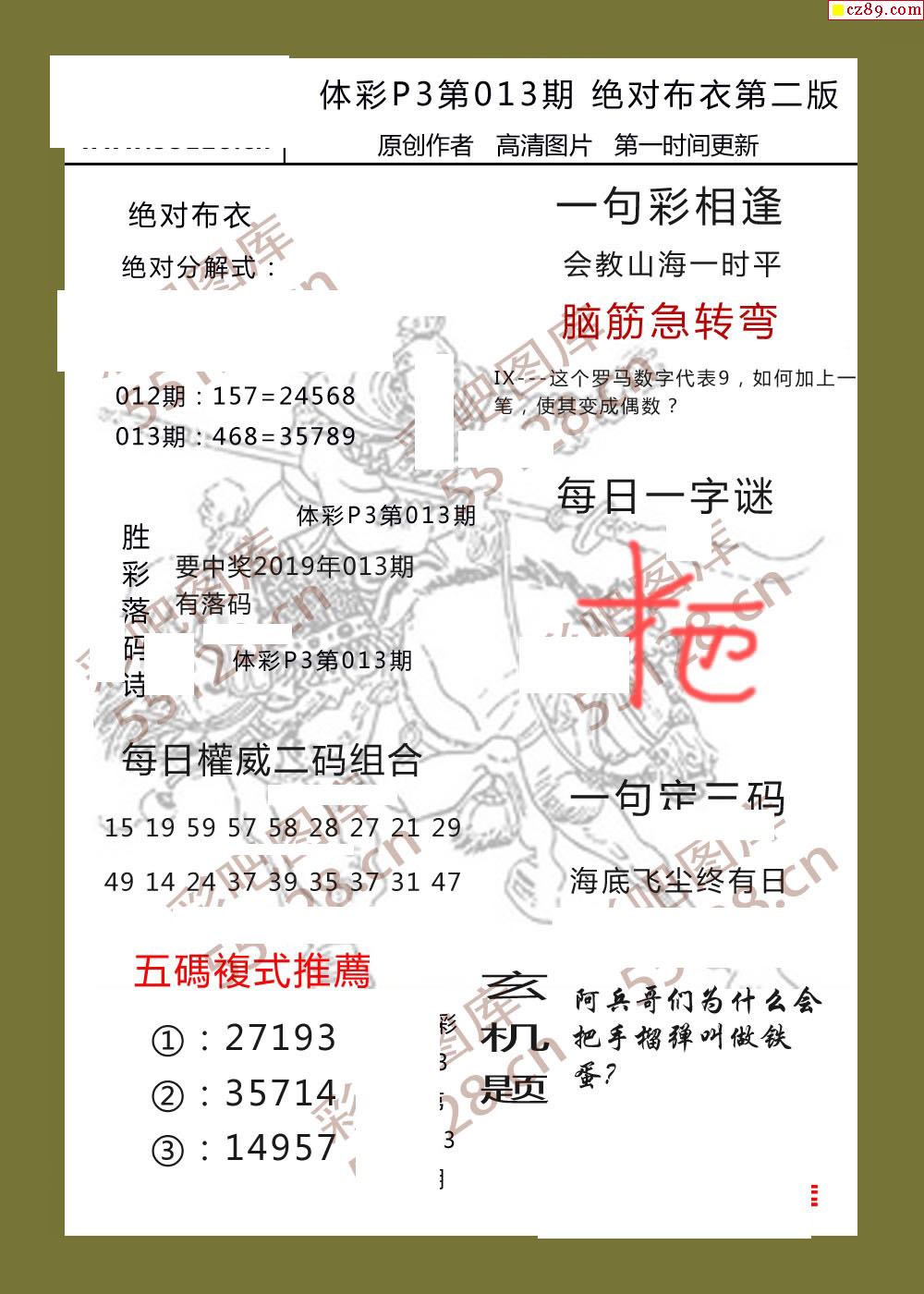 牛彩P3布衣26年013期AB版图谜(精华版)